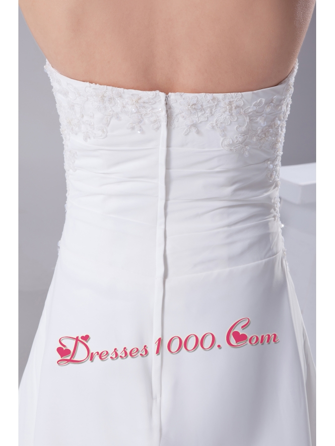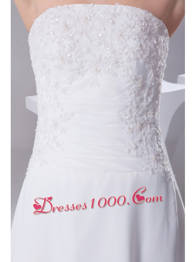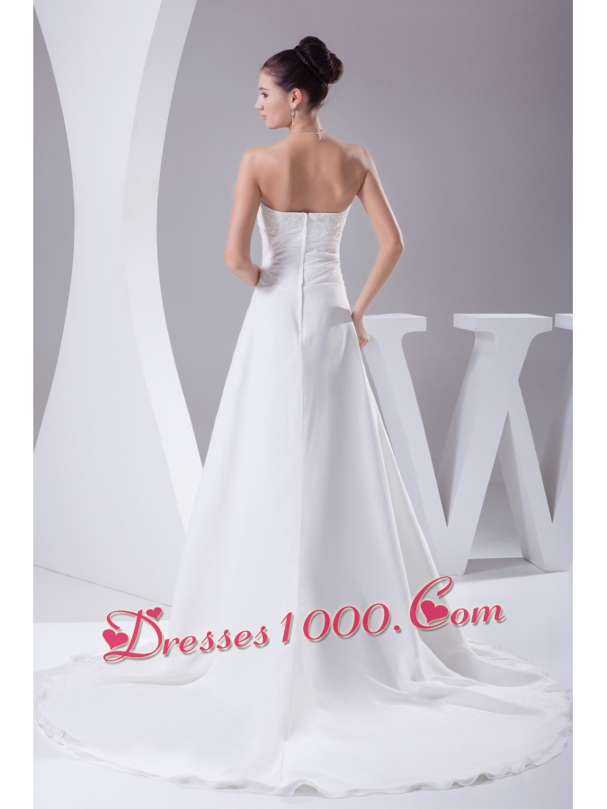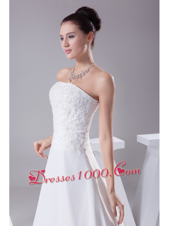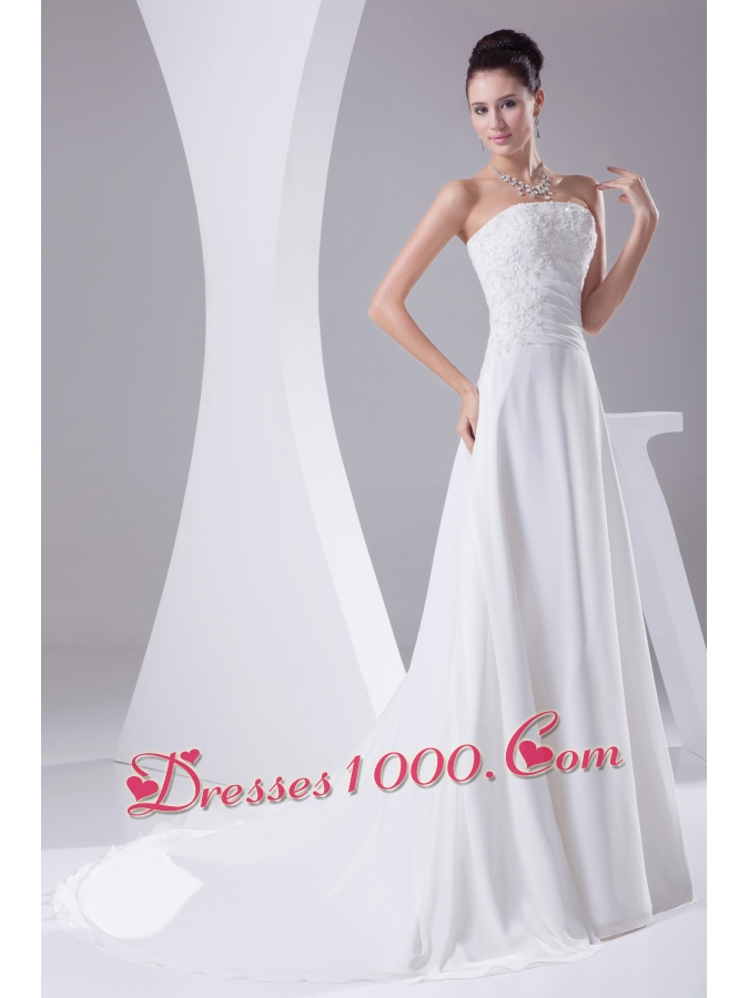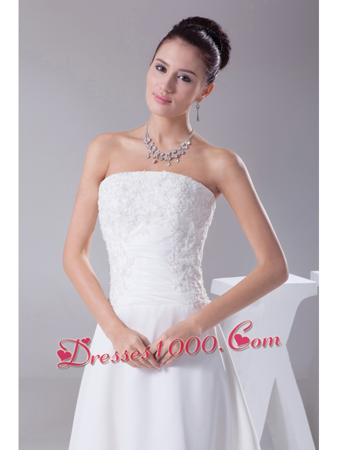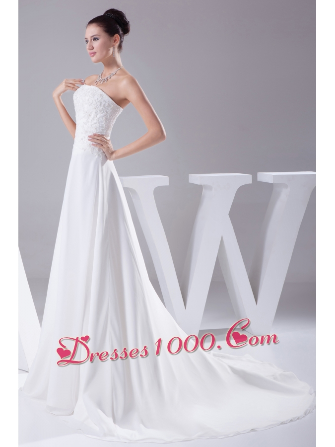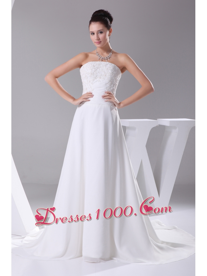 A-line Strapless Lace Court Train Wedding Dress