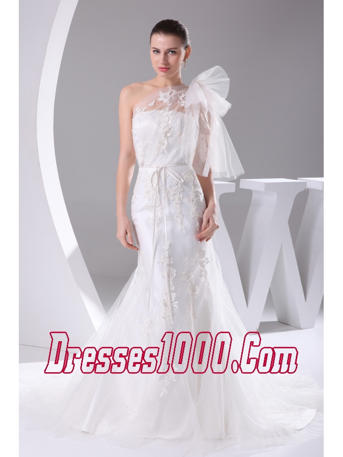 One Shoulder Mermaid Sash Brush Train Wedding Dress