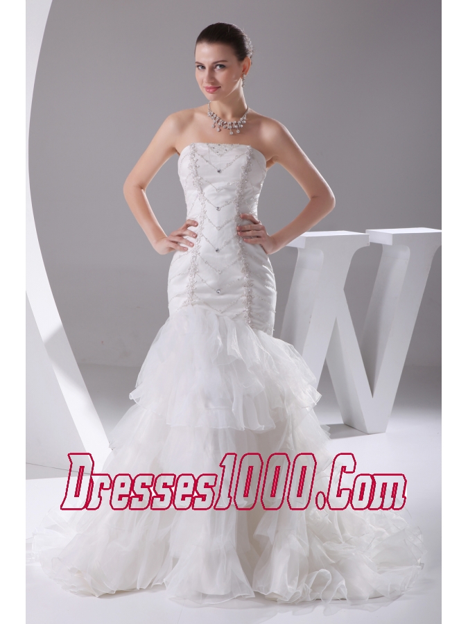 Mermaid Beading Ruffled Layers Brush Train Wedding Dress