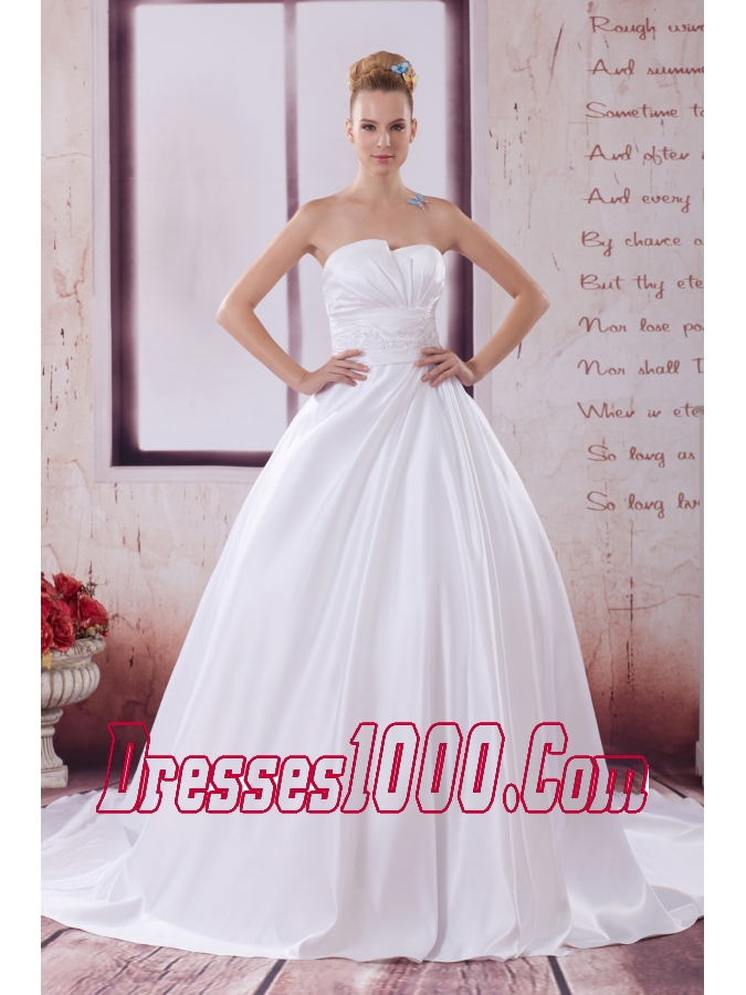 A-Line Court Train Appliques Wedding Dress with Strapless
