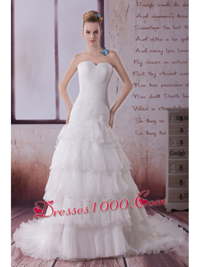 Ruffled Layers Mermaid Sweetheart Court Train Wedding Dress
