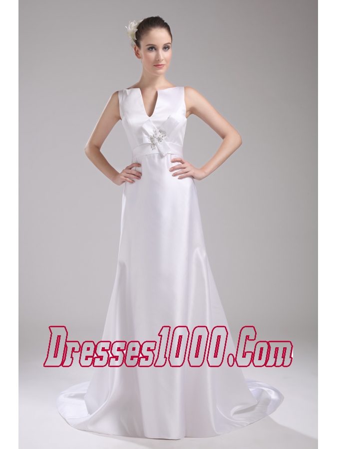 A-line V-neck Hand Made Flower Satin Wedding Dress