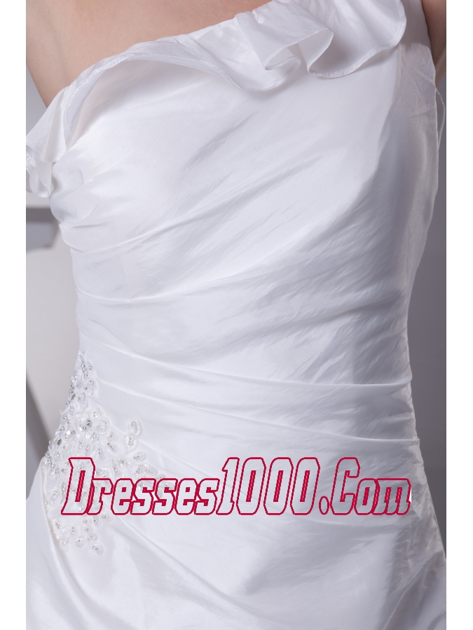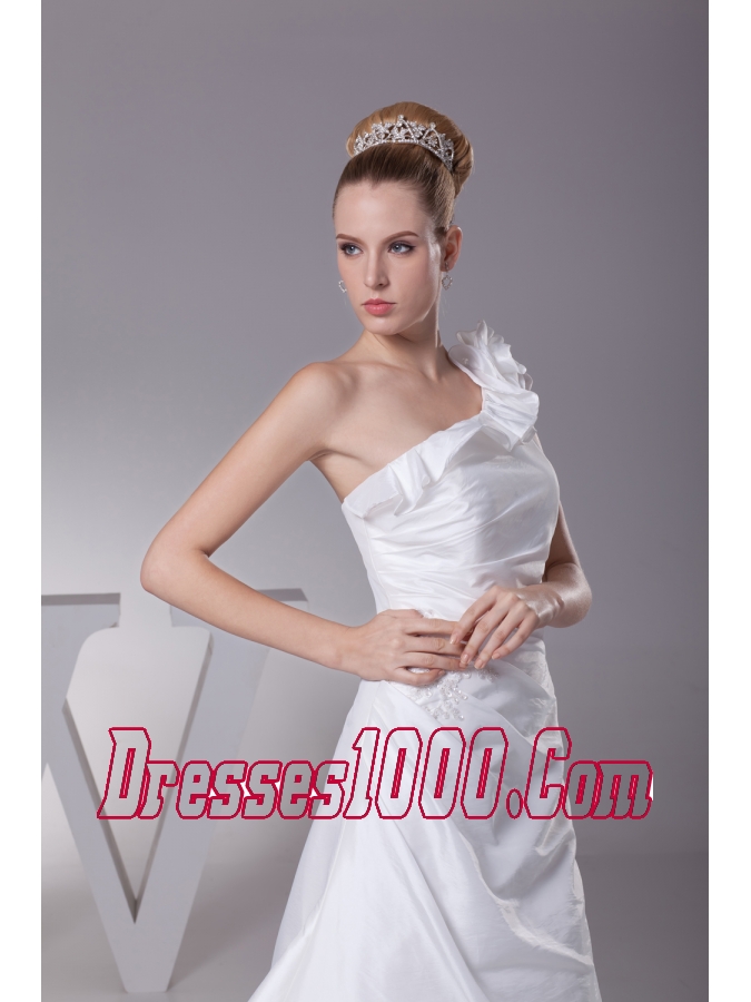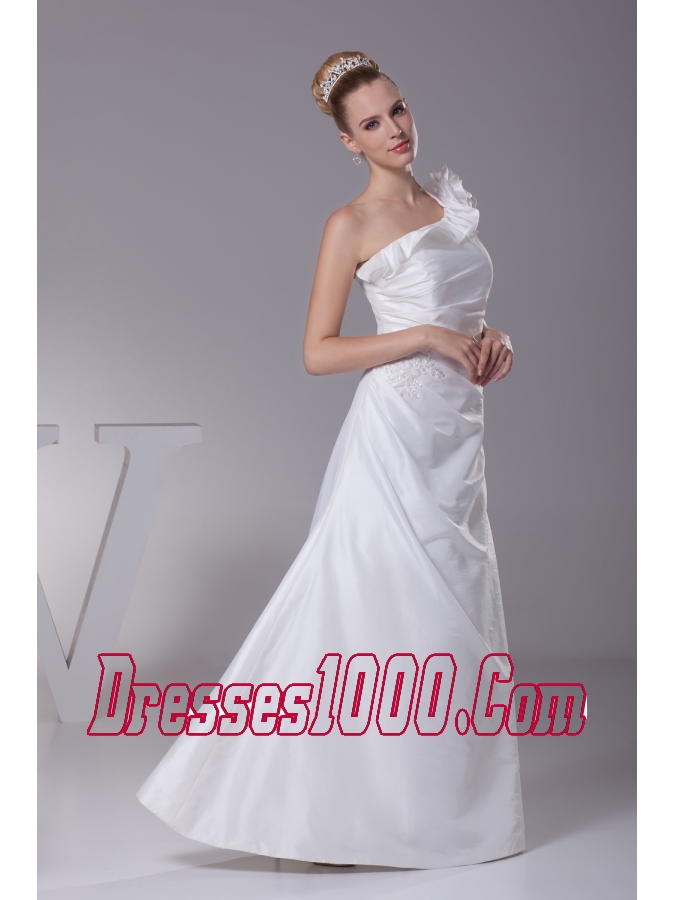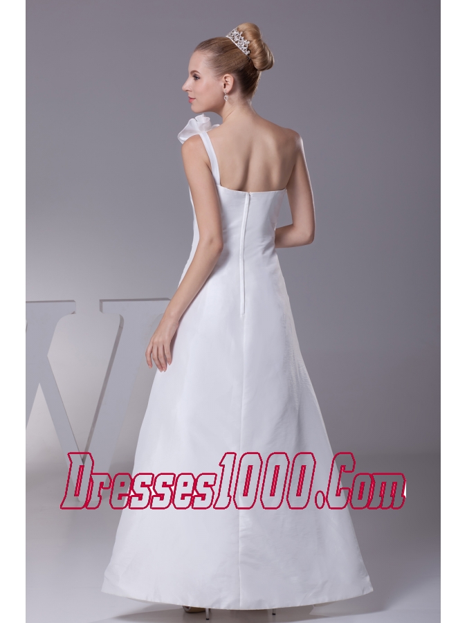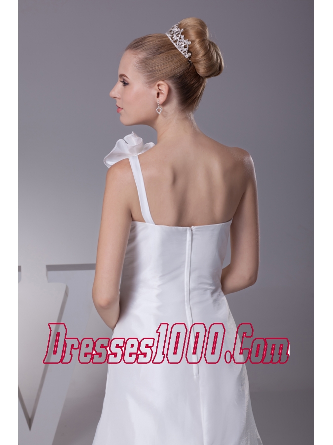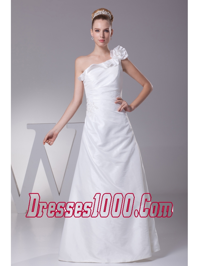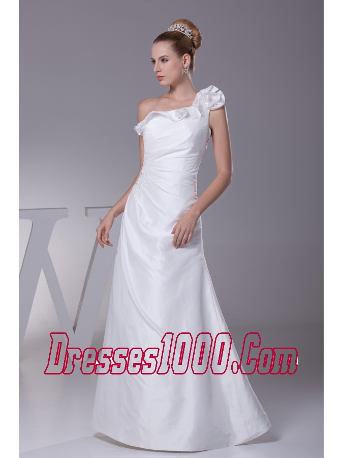 Hand Made Flower One Shoulder Column Long Wedding Dress