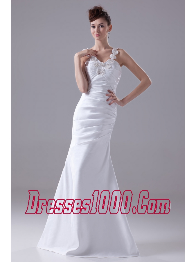 Column Straps Hand Made Flower Ruching Wedding Dress