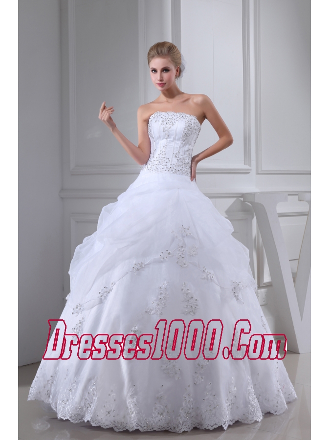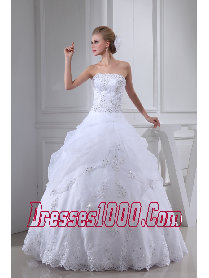 Appliques With Beading Strapless Ball Gown Floor-length Wedding Dress