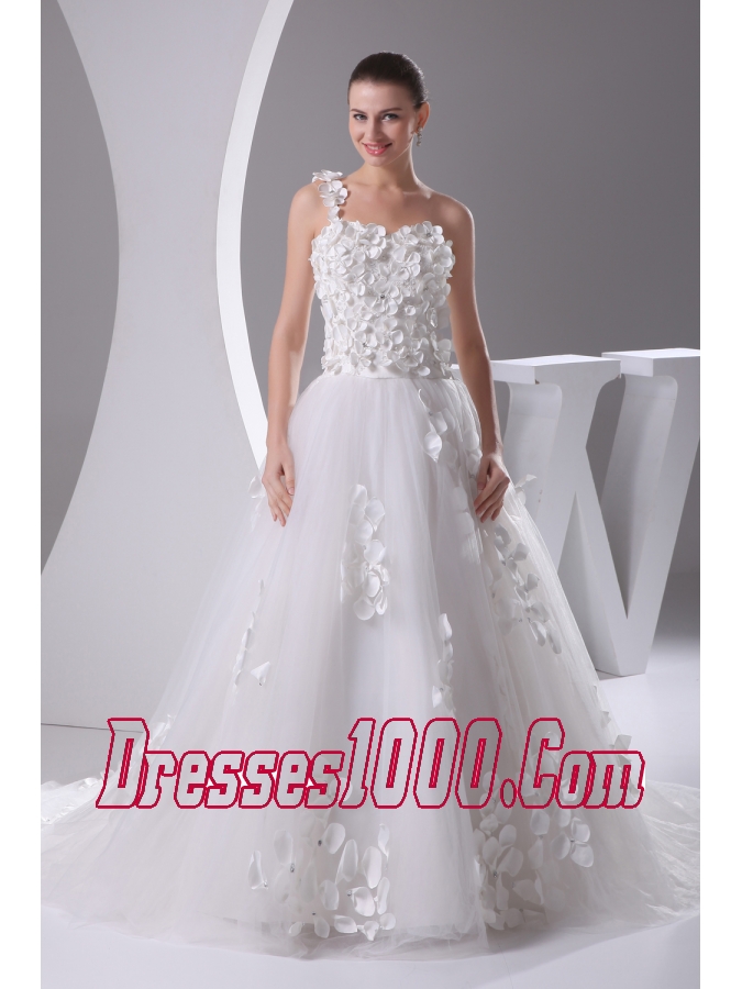 Appliques and Lace A-Line One Shoulder Court Train Wedding Dress