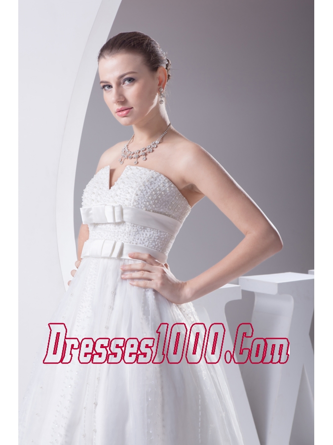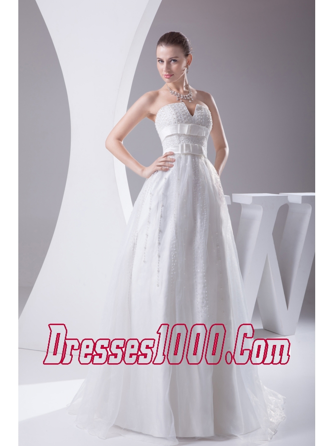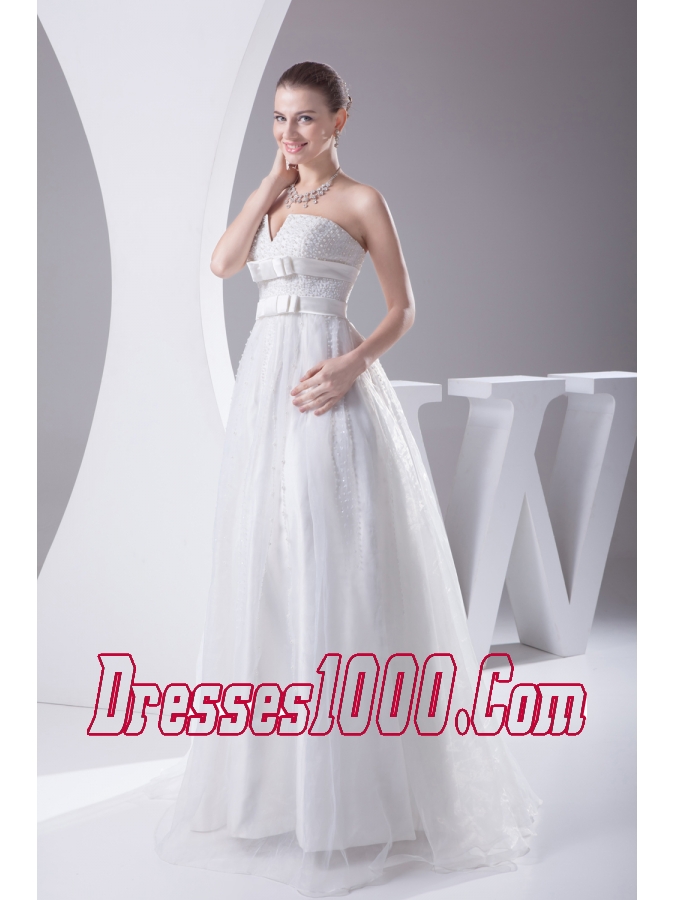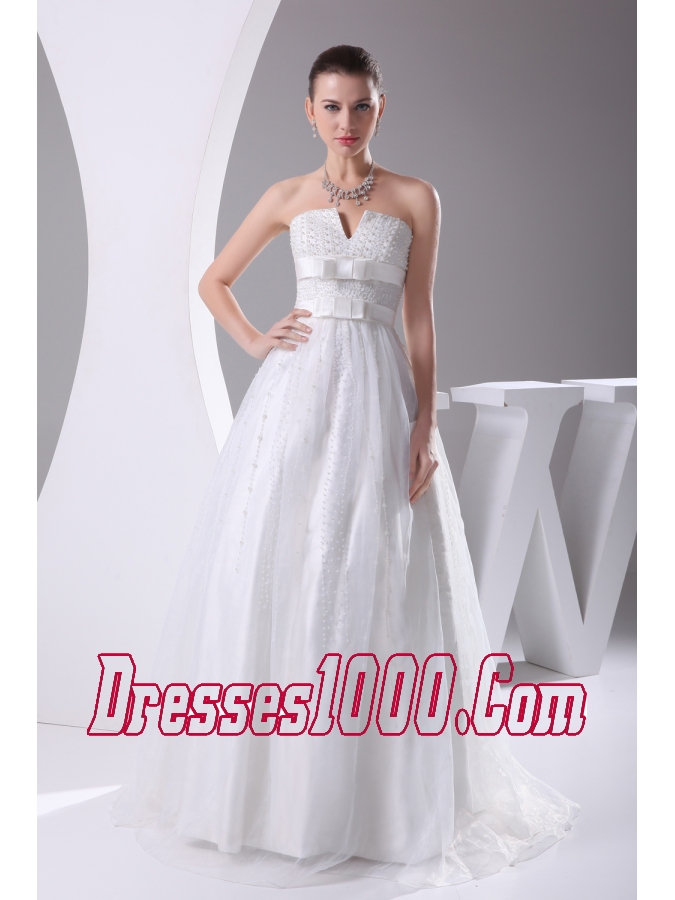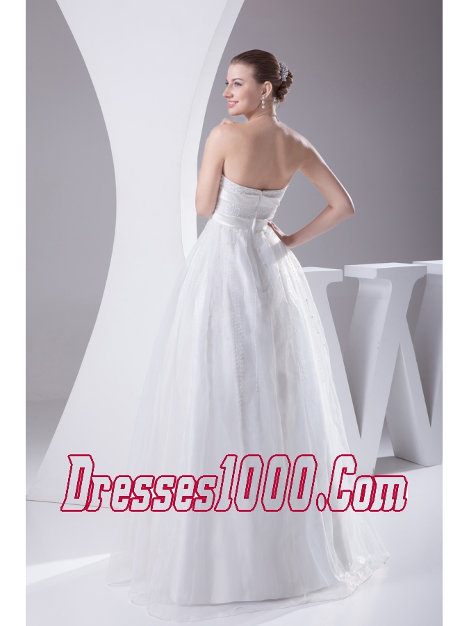 Beading and Belt Column Strapless long Wedding Dress