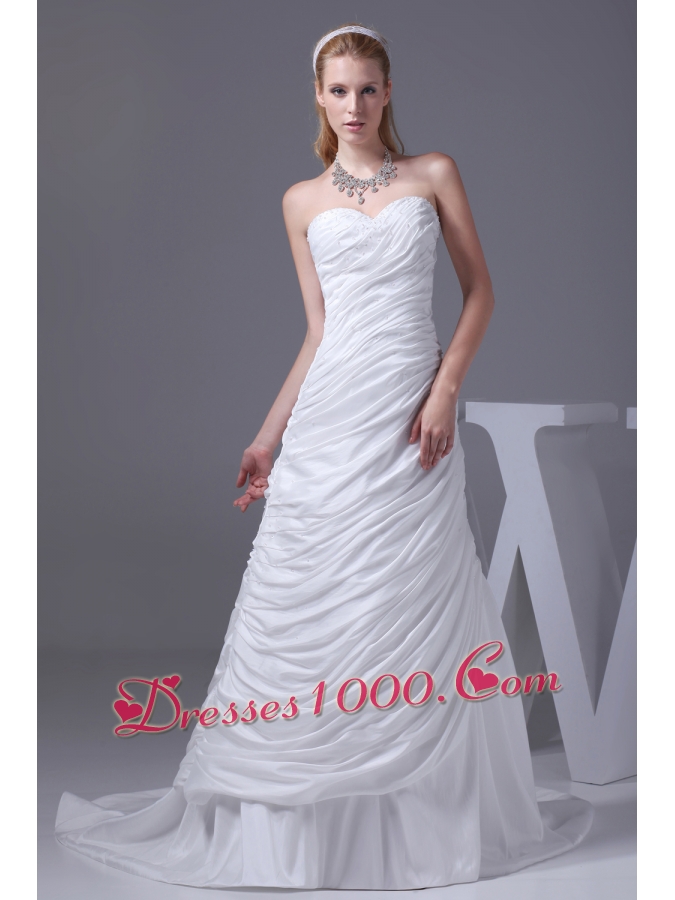 Beading Ruching Sweetheart Brush Train Wedding Dress