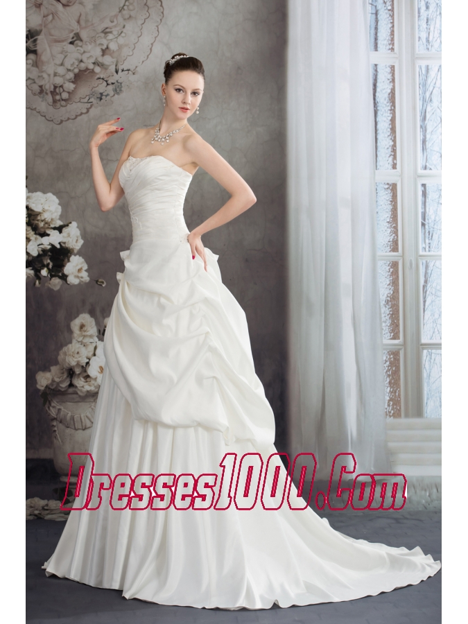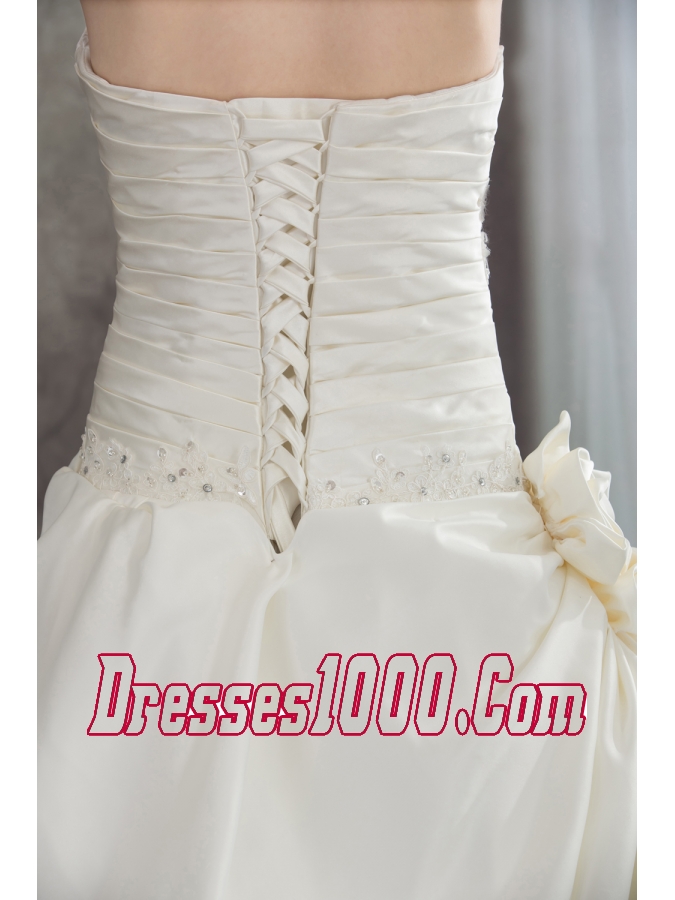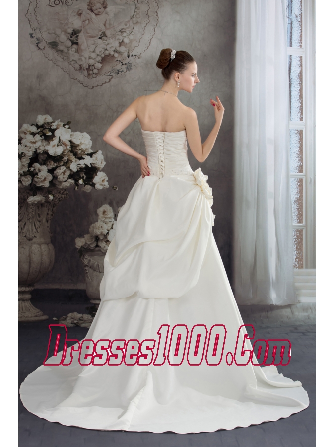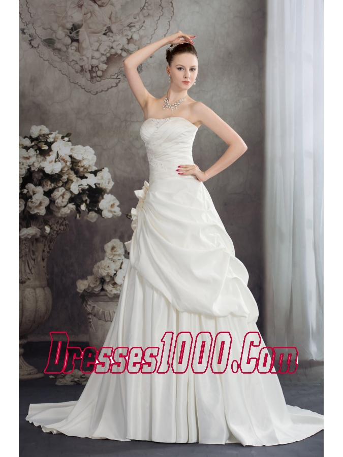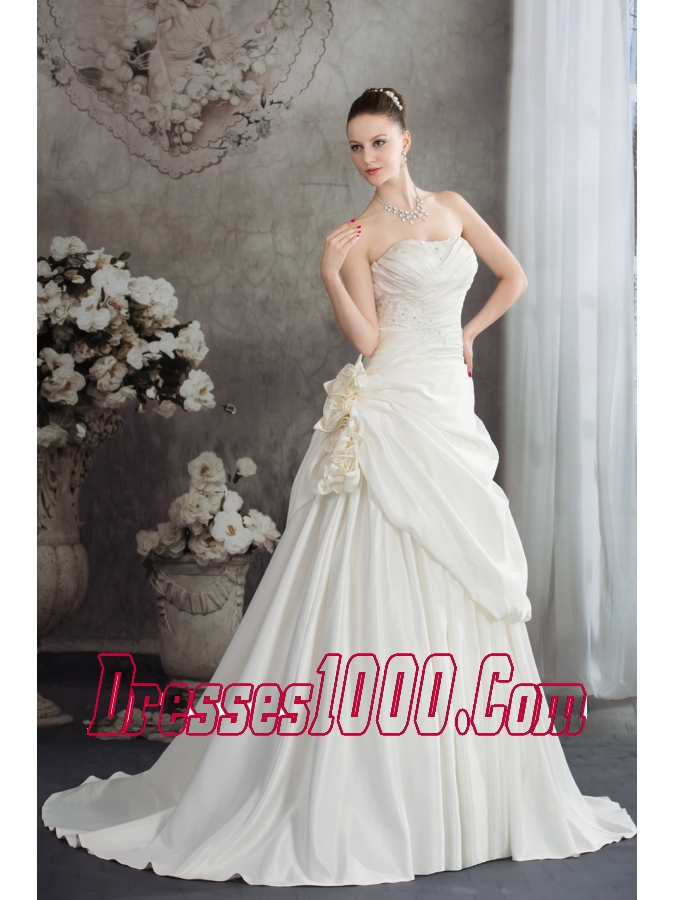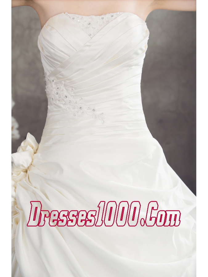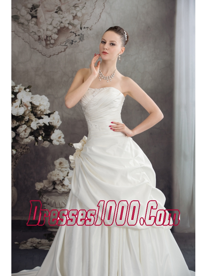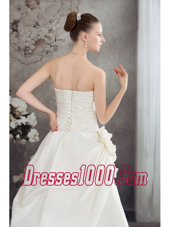 A-line Strapless Hand Made Flowers Brush Tarin Wedding Dress