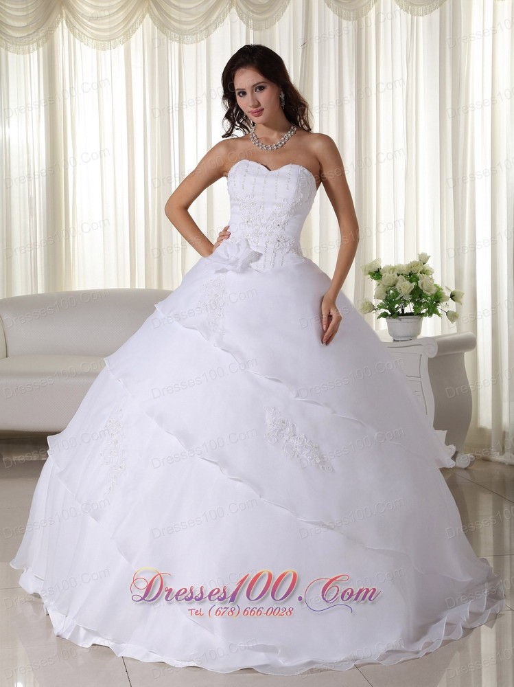 Beaded Organza Flower Sweetheart Wedding Ball Gown