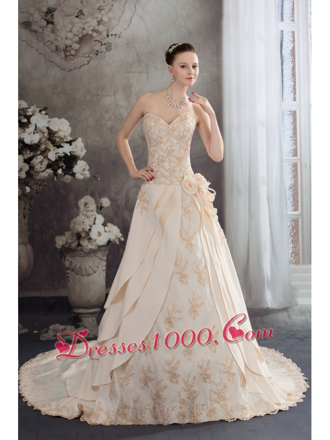 Sweetheart A-line Appliques Hand Made Flowers Taffeta Wedding Dress