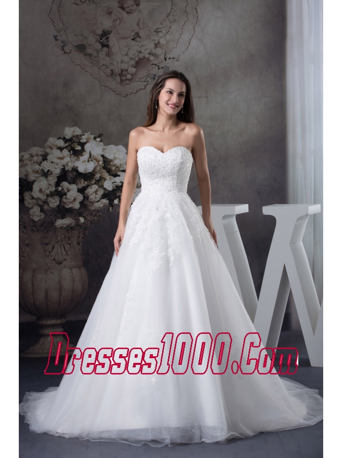 A-line Sweetheart Appliques Tulle Wedding Dress