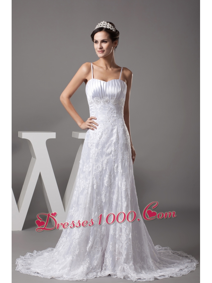 A-line Spaghetti Straps Lace Court Train Wedding Dress
