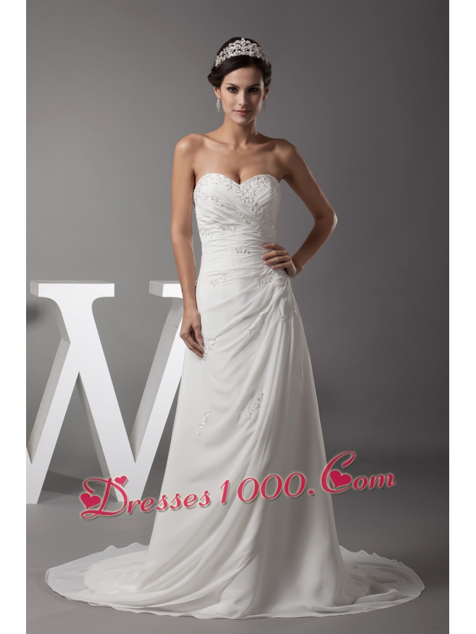 Appliques Sweetheart Column Wedding Dress With Lace Up Back