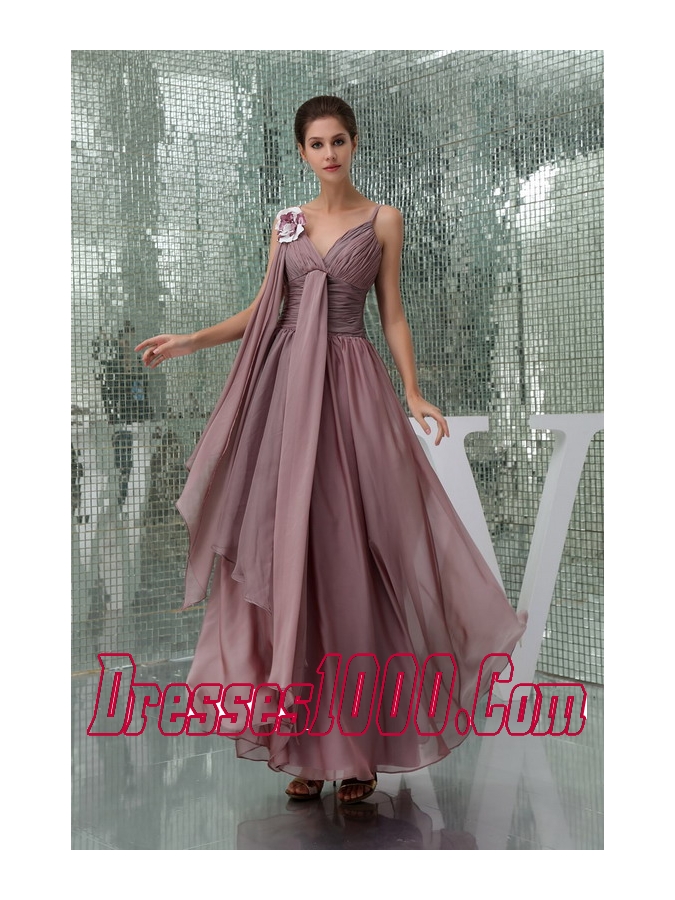 Burgundy Spaghetti Straps Ruching Chiffon Mother of the Bride Dress