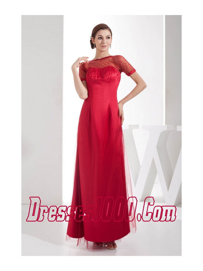 Scoop Ankle-length Sequins Red Mother of the Bride Dress Short Sleeves