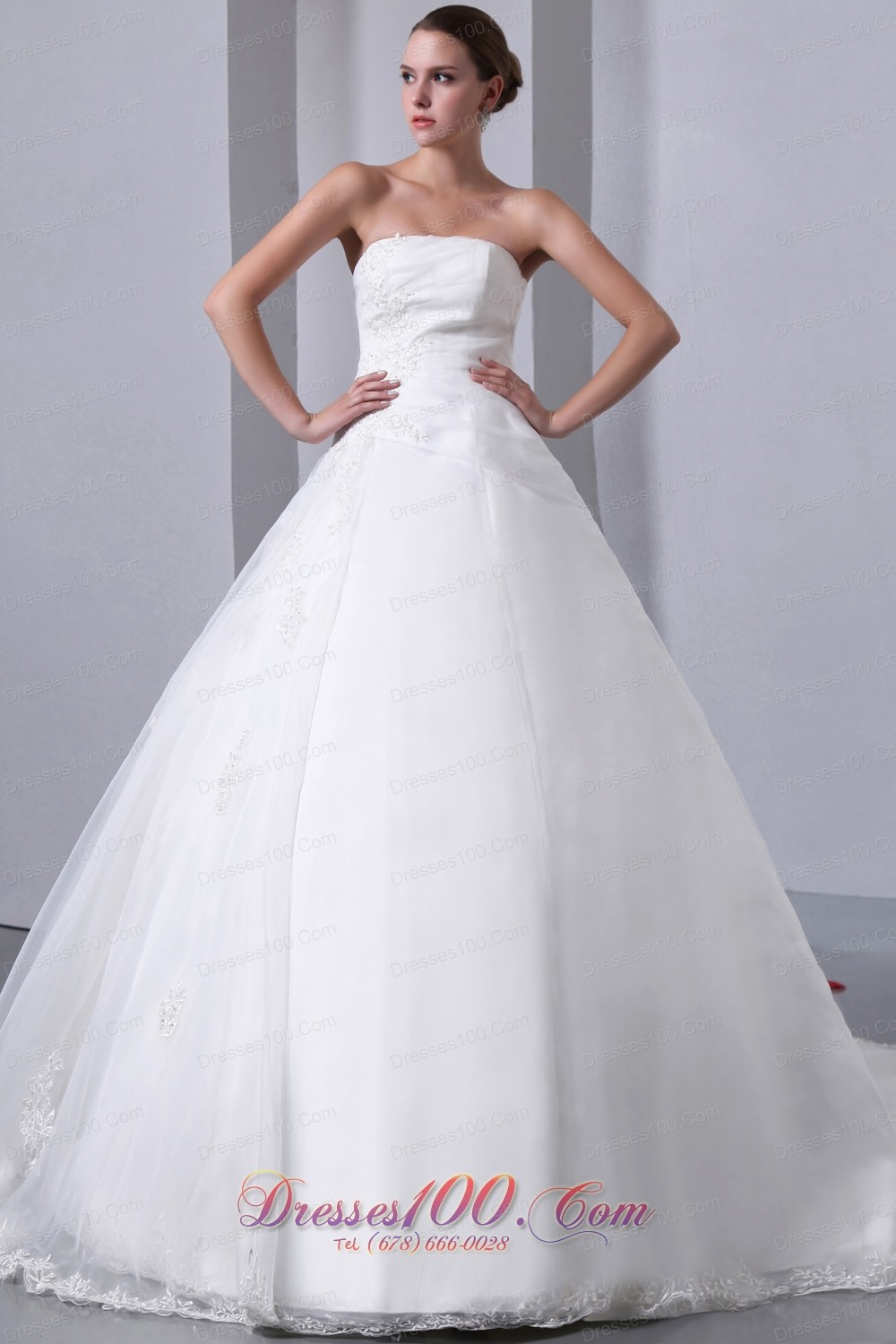 Appliques Organza Chapel Train Wedding Bridal Dress
