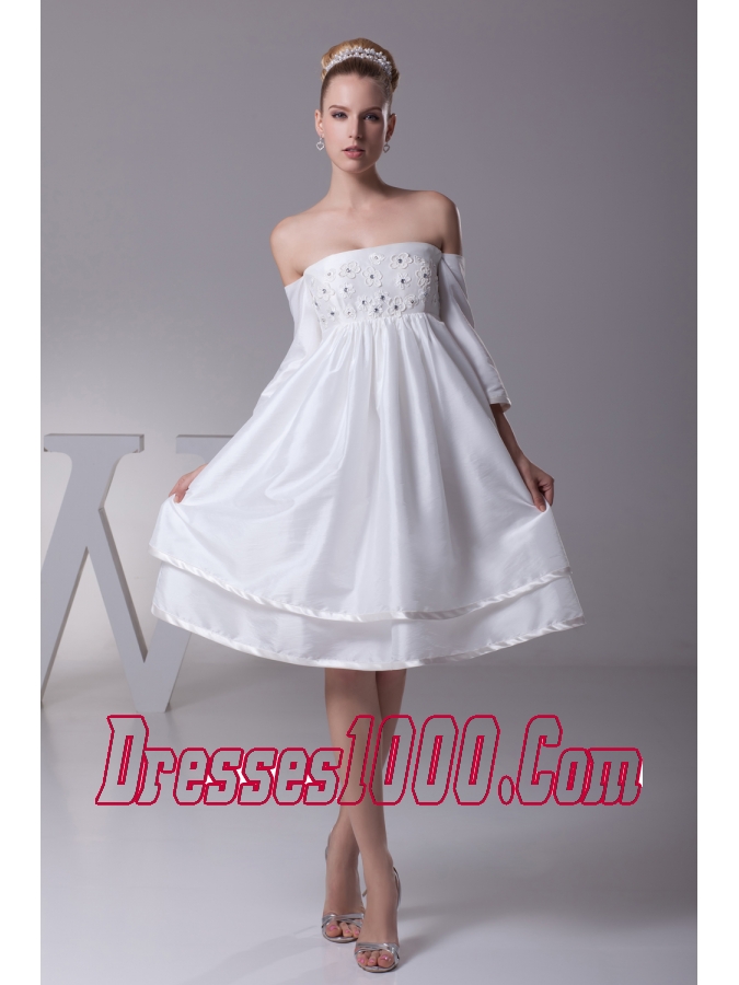 Off The Shoulder 3/4 Sleeves Knee-length Wedding Dress
