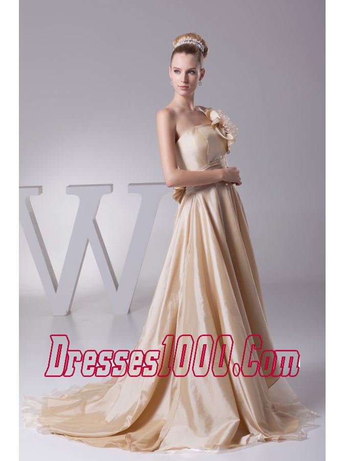 Hand Made Flowers Strapless Princess Wedding Dress With Brush Train