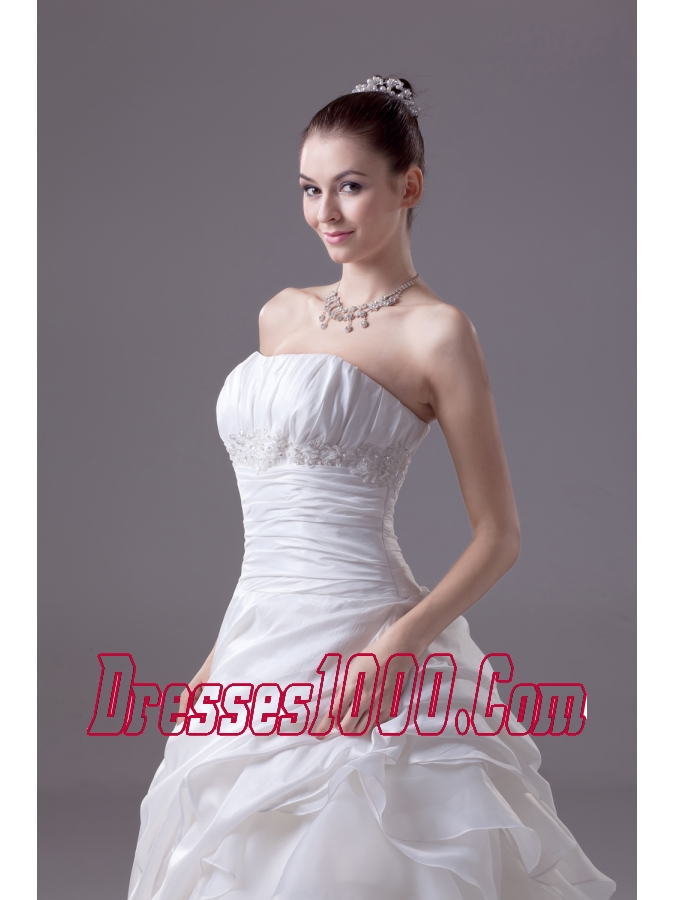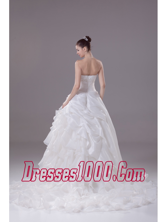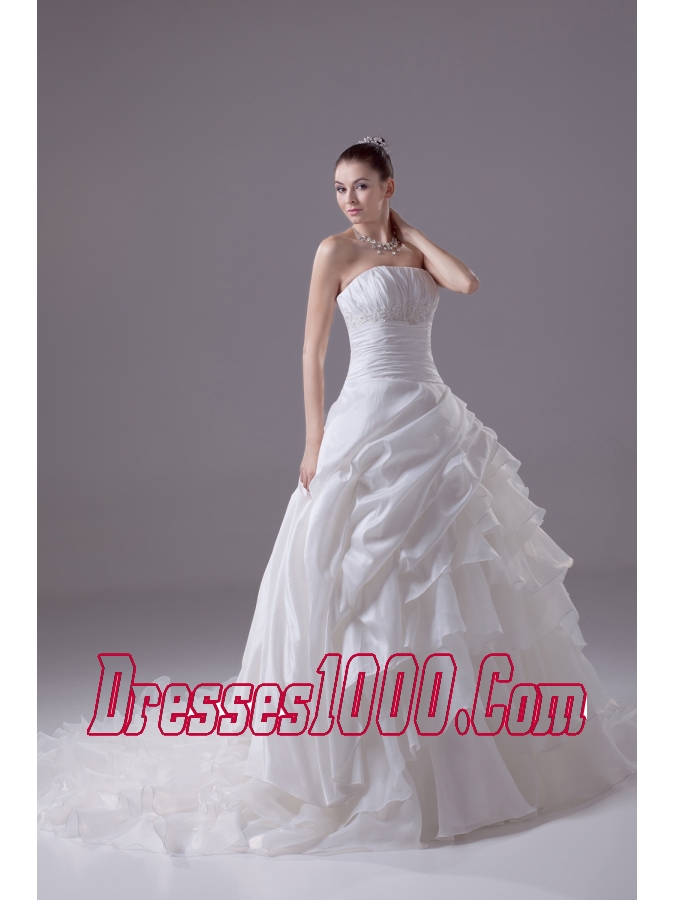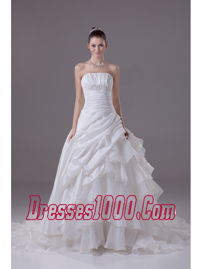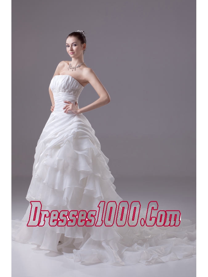 Ruffled Layers Strapless Chapel Train Princess Wedding Dress