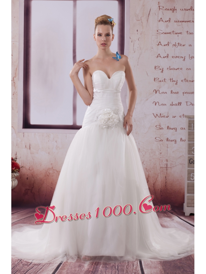 Handle Made Flower A-Line Court Train Sweetheart Wedding Dress