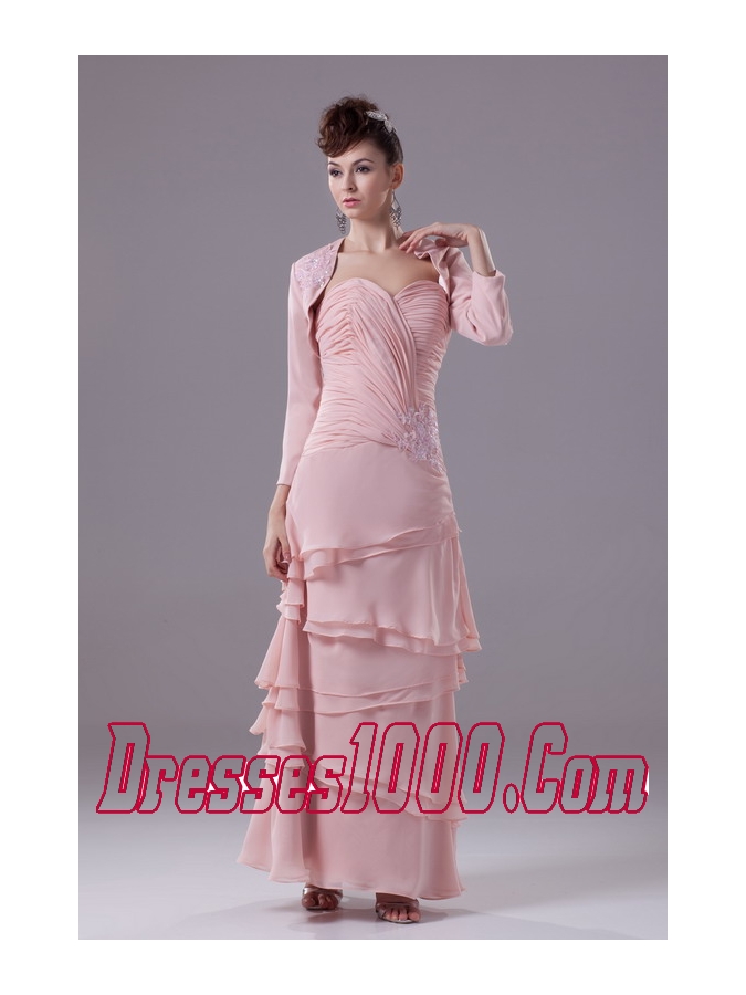Appliques and Ruching Sweetheart Ankle-length Mother Of The Bride Dress