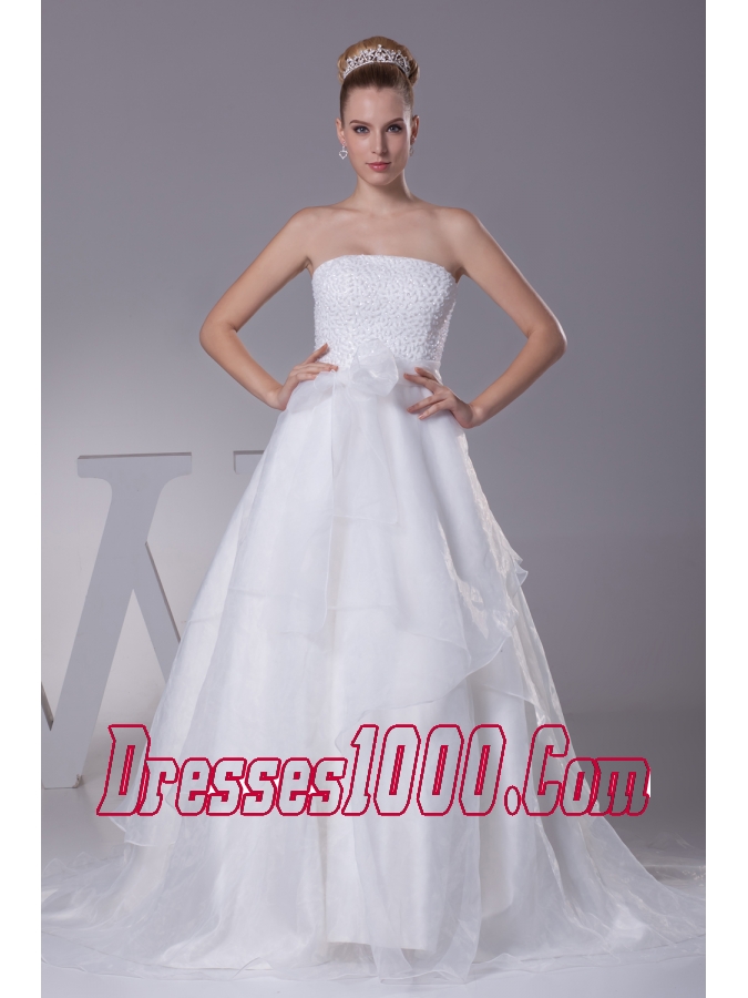 Beading Strapless Court Train A-Line Wedding Dress with Zipper-up