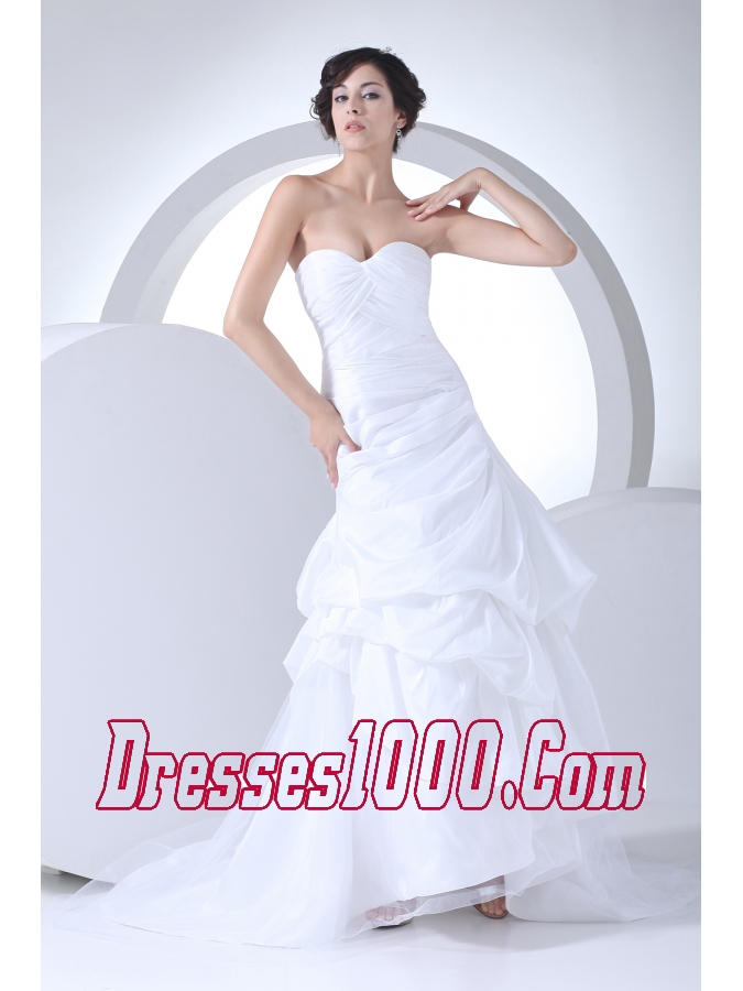 Sweetheart A-line Ruching Brush Train Wedding Dress