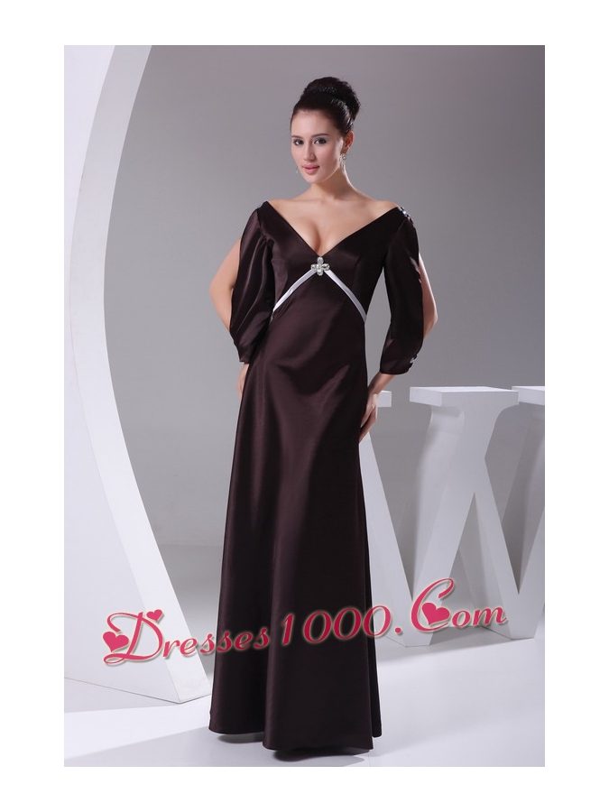 V-neck 3/4 Sleeves Beading Empire Long Mother of Bride Dresses