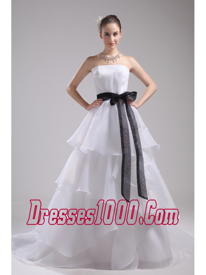 A-Line Sash Strapless Court Train Cheap Wedding Dress