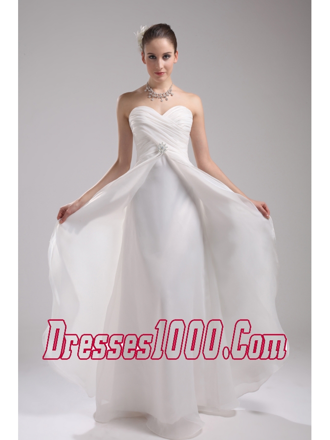 Column Sweetheart Ruching Organza Wedding Dress