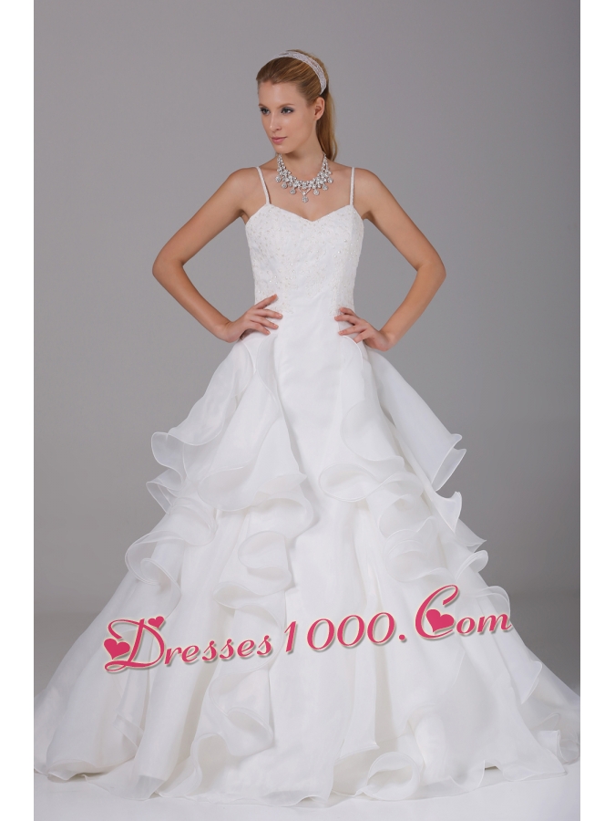 Appliques With Beading Ruffles Spaghetti Straps Wedding Dress