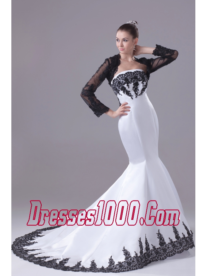 Modest Lace Strapless Mermaid Chapel Train Wedding Dress