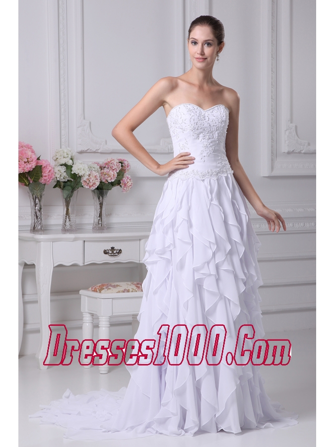 Sweehteart Ruffles Embroidery Brush Train Chiffon Wedding Dress