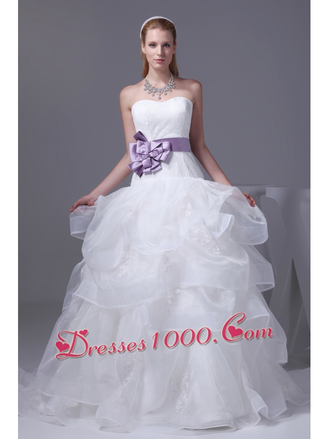 Lace Appliques Hand Made Flower Ruffles Wedding Dress