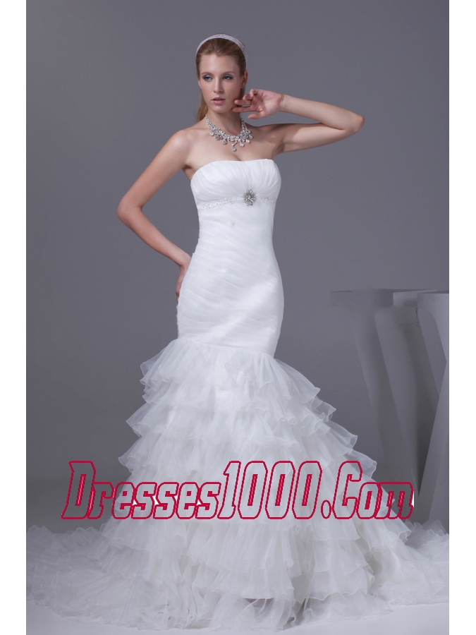 Beading Ruffled Layers Mermaid Strapless Wedding Dress