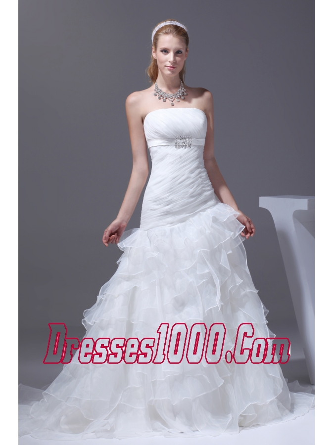 Ruffled Layers A-line Brush Train Strapless Wedding Dress