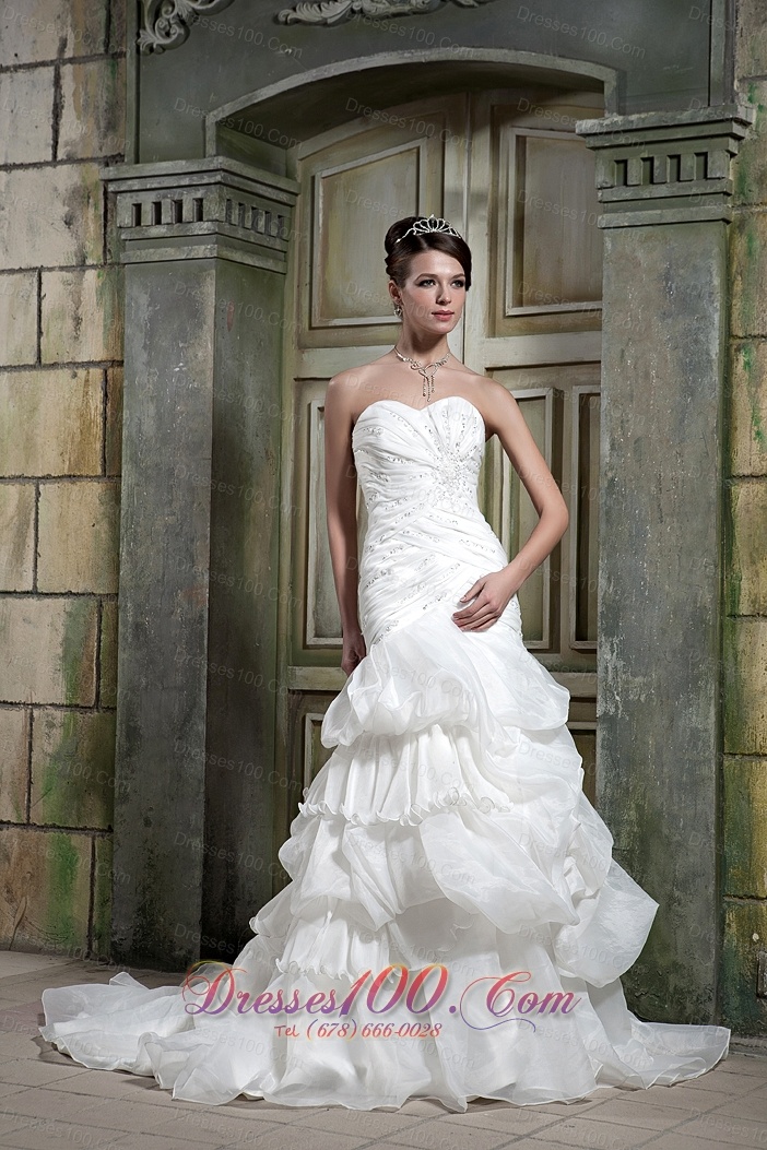 Sweetheart Ruched Layered Chapel Train Wedding Gown