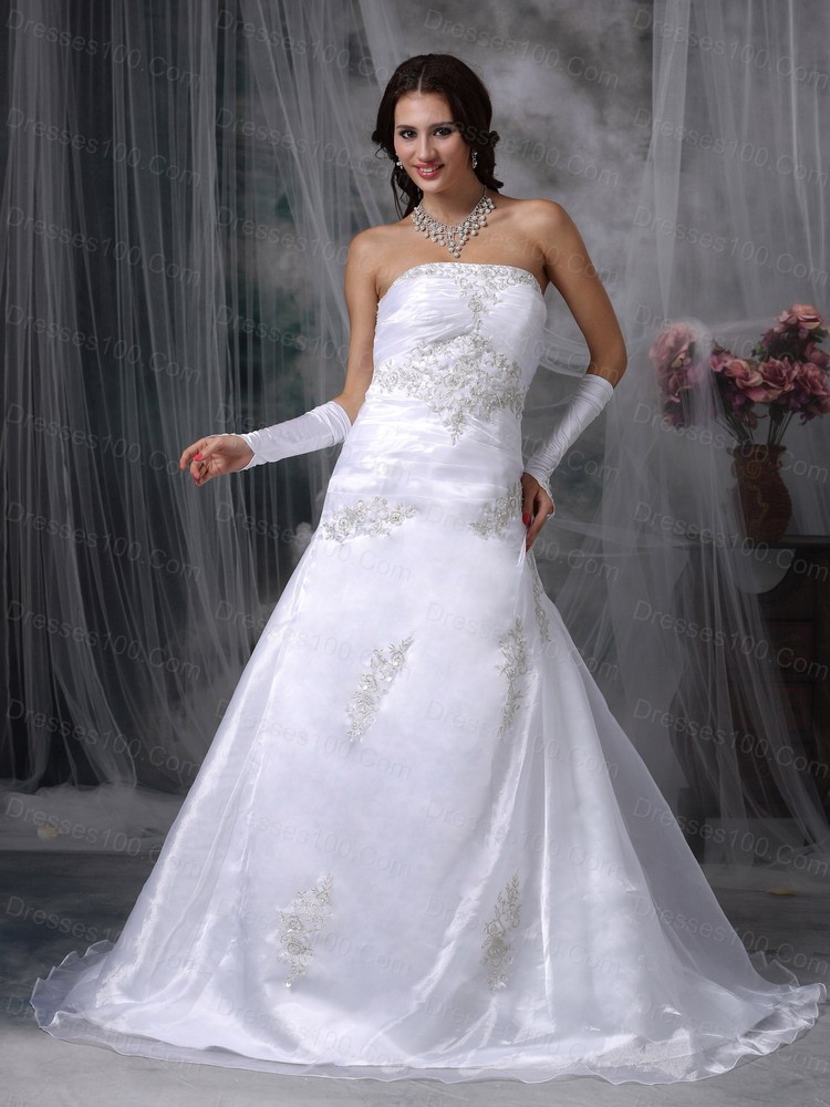 Strapless Organza Appliques Court Train Wedding Dress