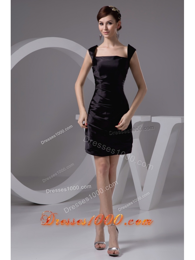 Square Ruched Mini-length Black Taffeta Prom Gown Dress 2013