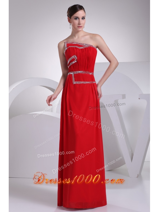 Ruching and Beading Red Prom Gowns with Asymmetrical Neckline