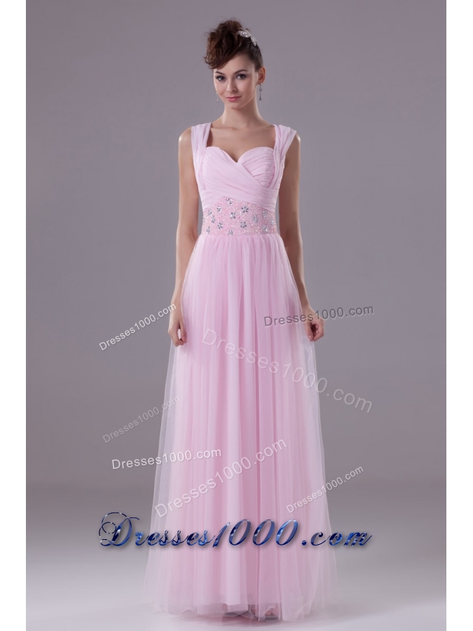 Wide Straps Sweetheart Ankle-length Prom Dresses with Beaded Waist