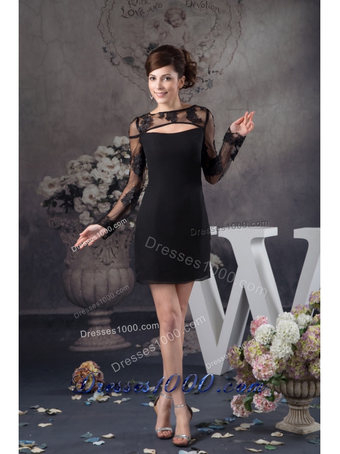 Black Chiffon and Lace Prom Evening Dress with Long Sleeves
