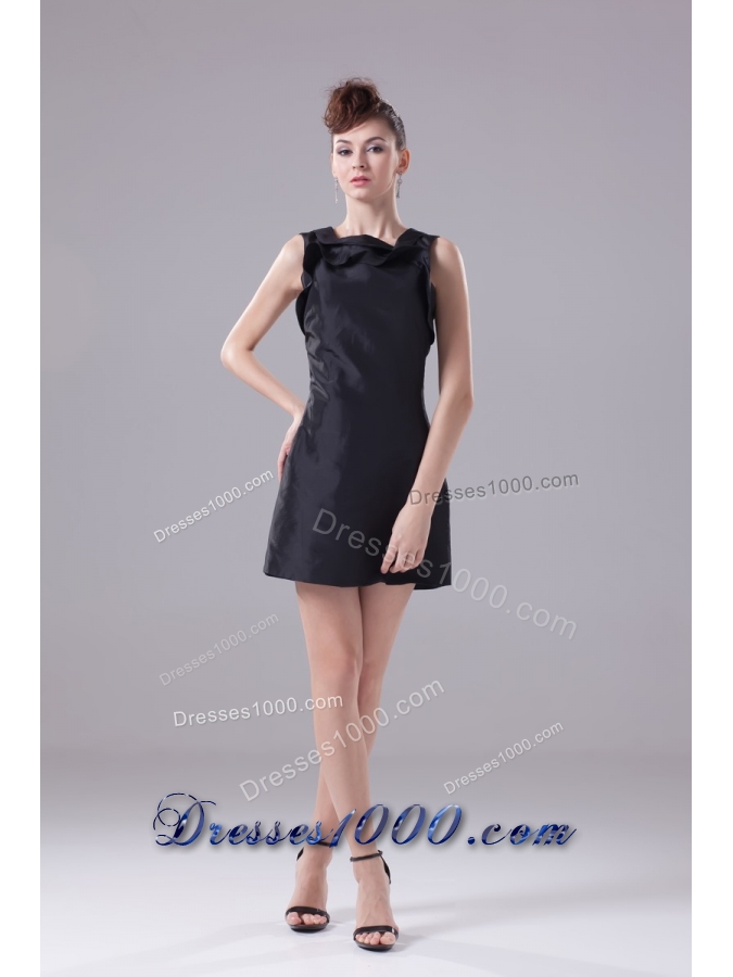 Mini-length Prom Dress in Black with Petal Square Neckline