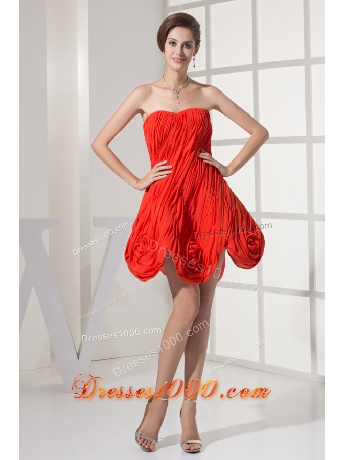 Flowers and Ruching Accent Mini-length Red Prom Homecoming Dress