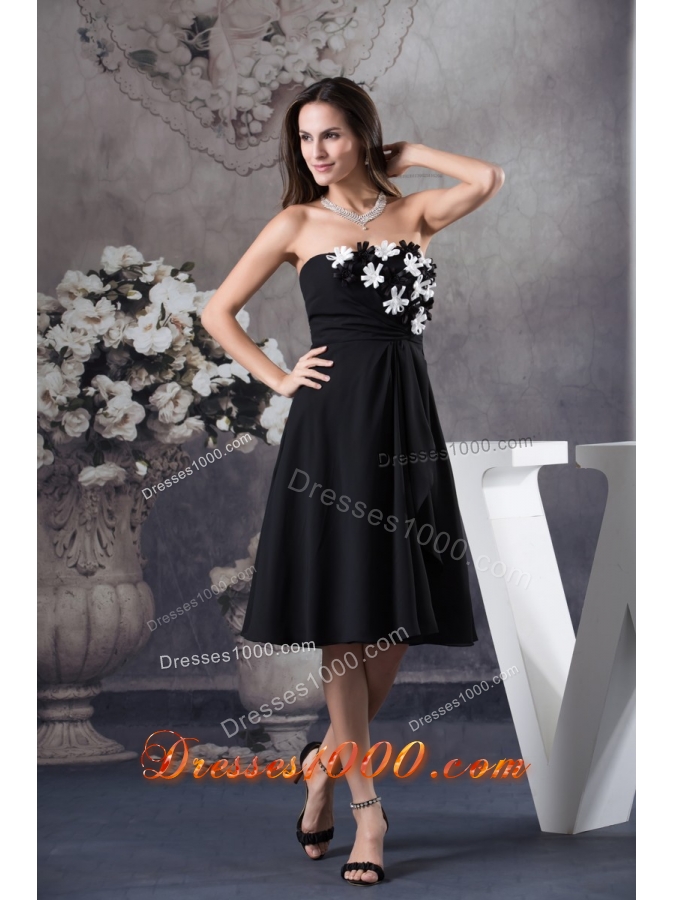 Hand Made Flowers Decorated Strapless Prom Dress in Black
