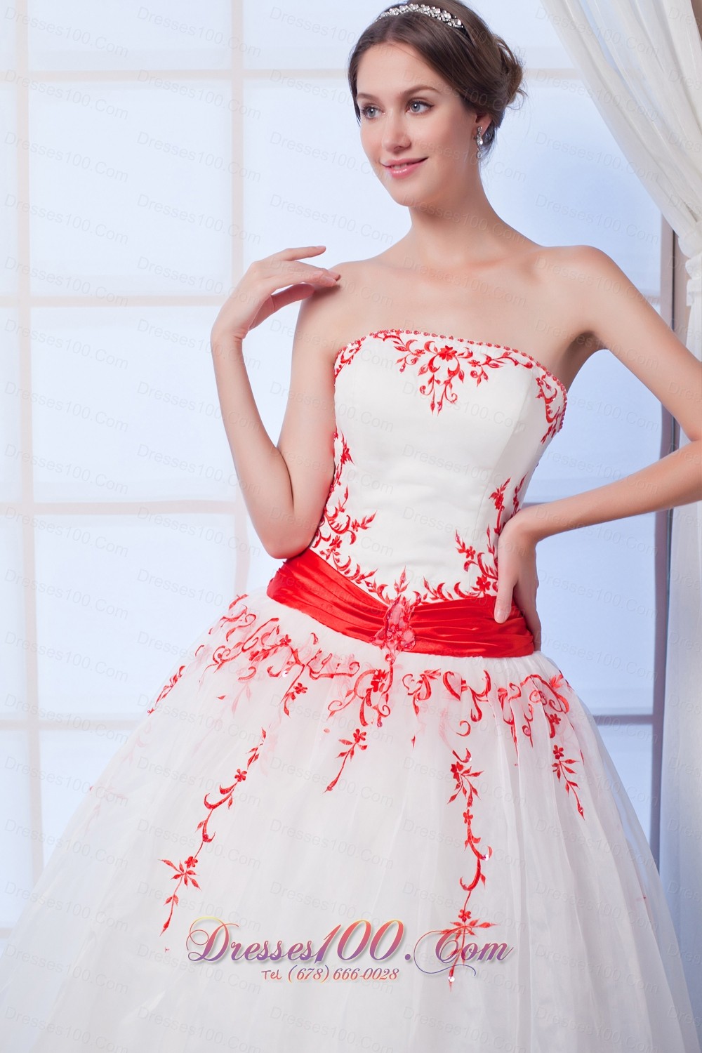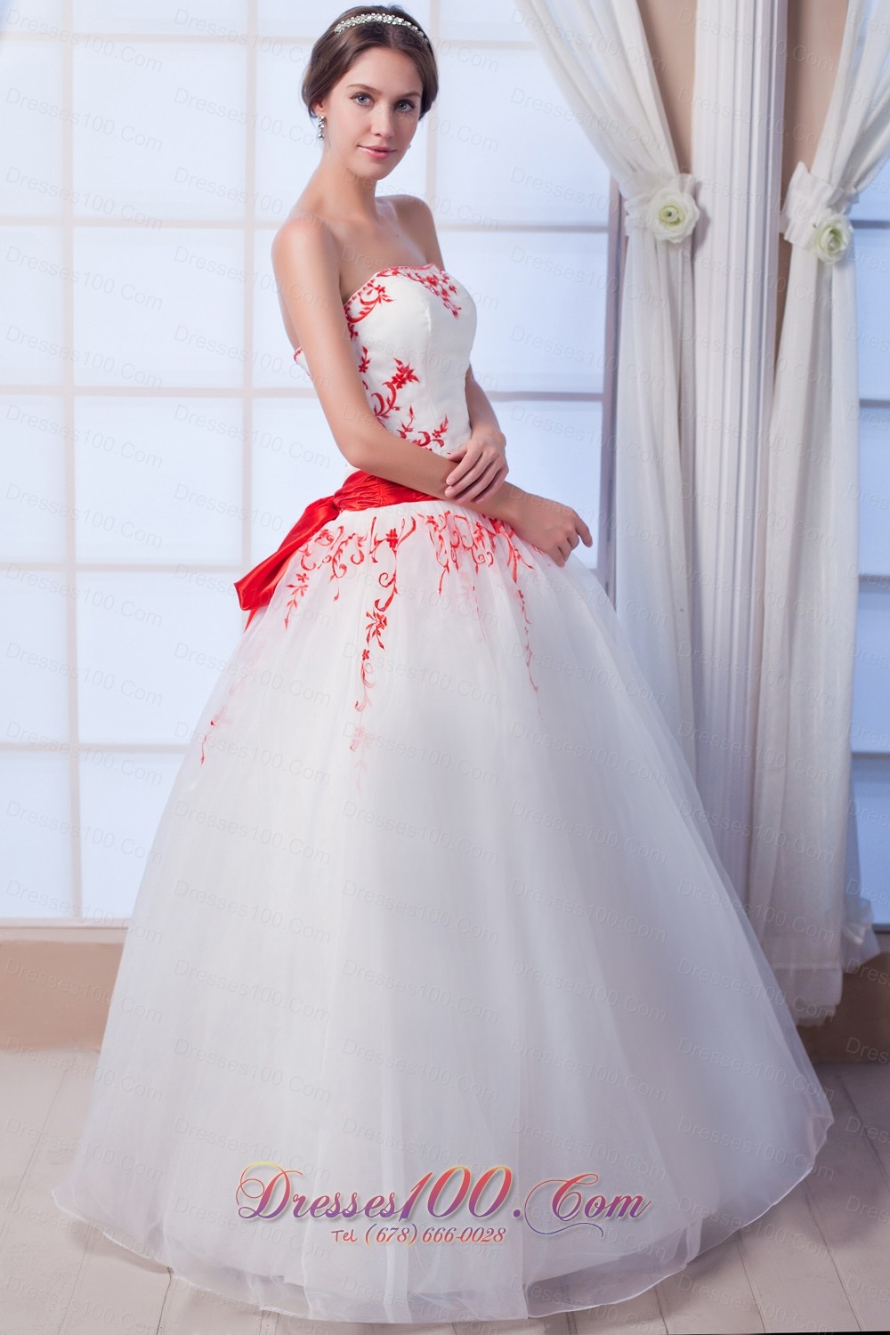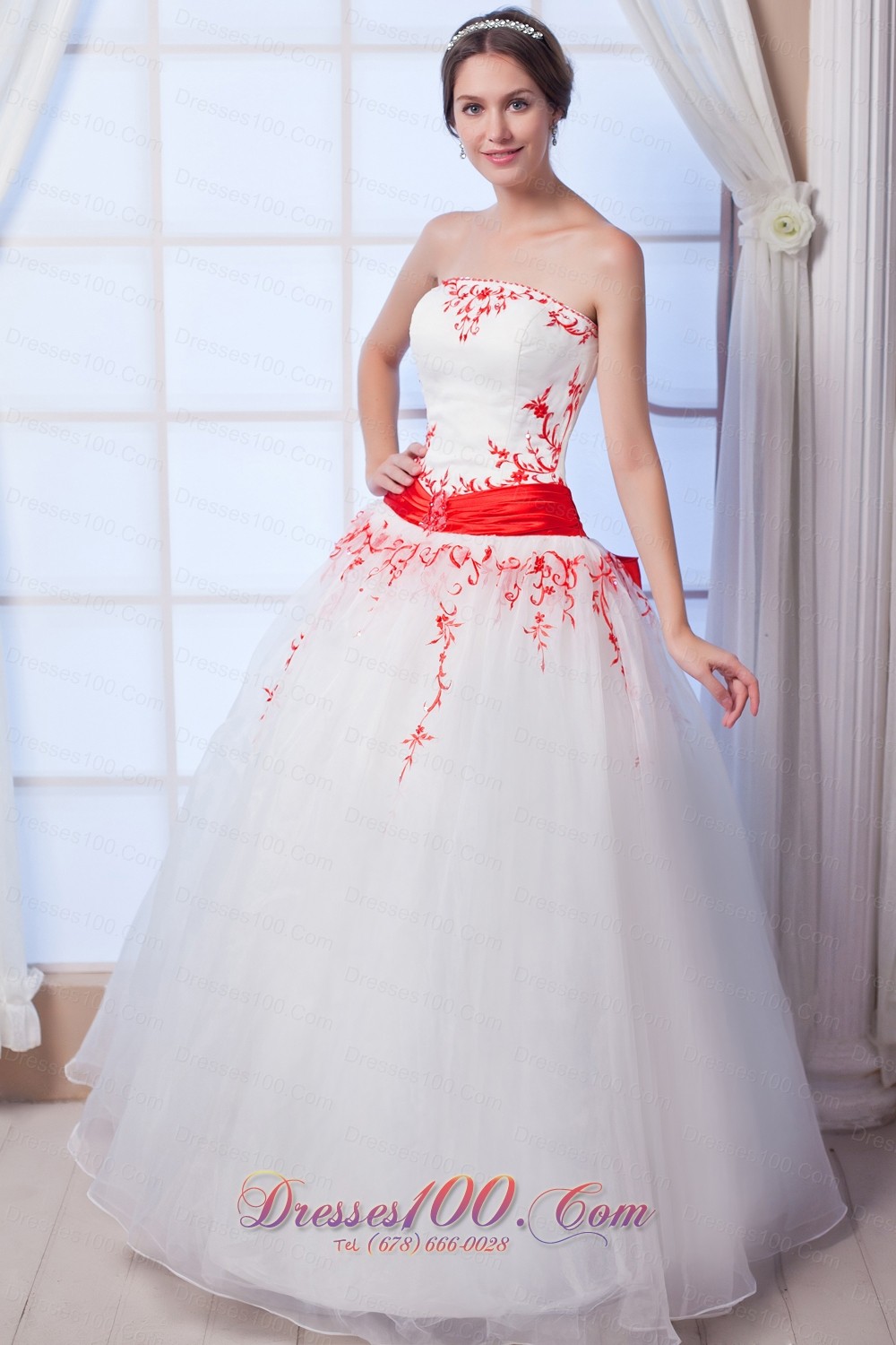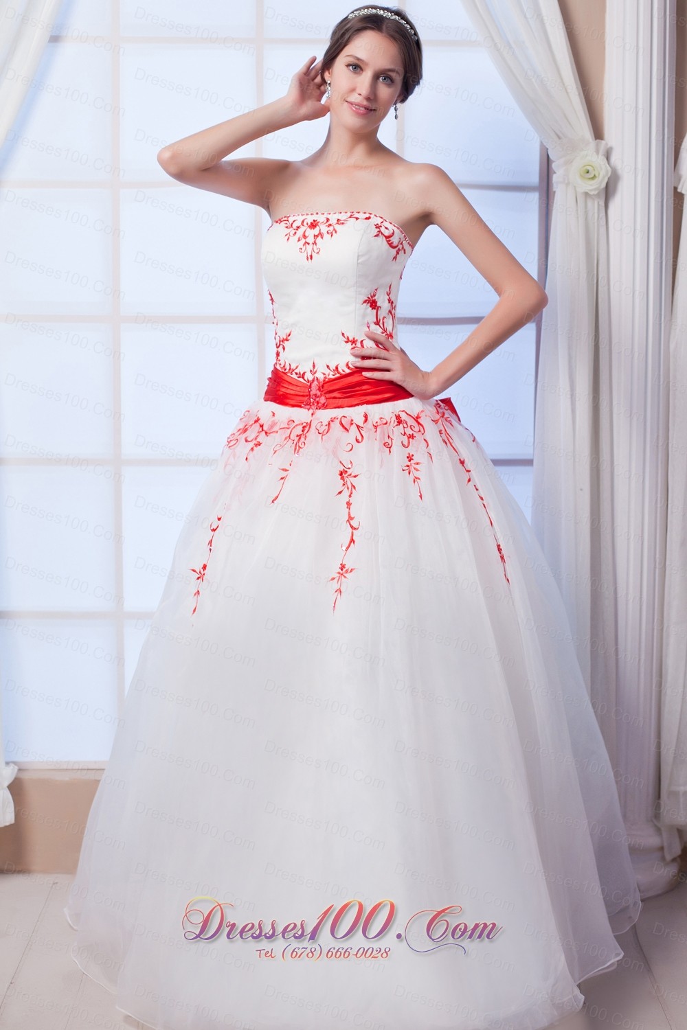 Colored Appliques Organza A Line Strapless Wedding Dress