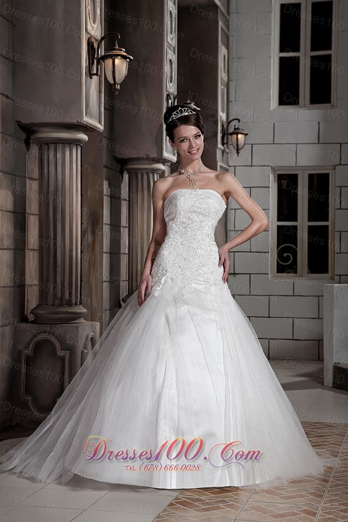Beading Strapless Ball Gown Court Train Wedding Dress