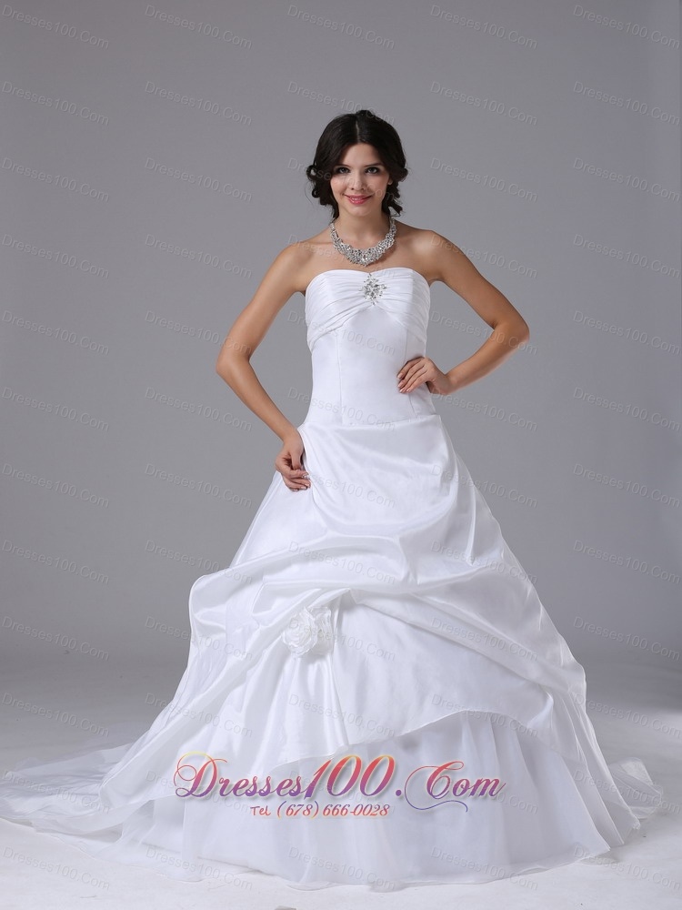Strapless Ball Gown Wedding Dress Chapel Train Pick-ups