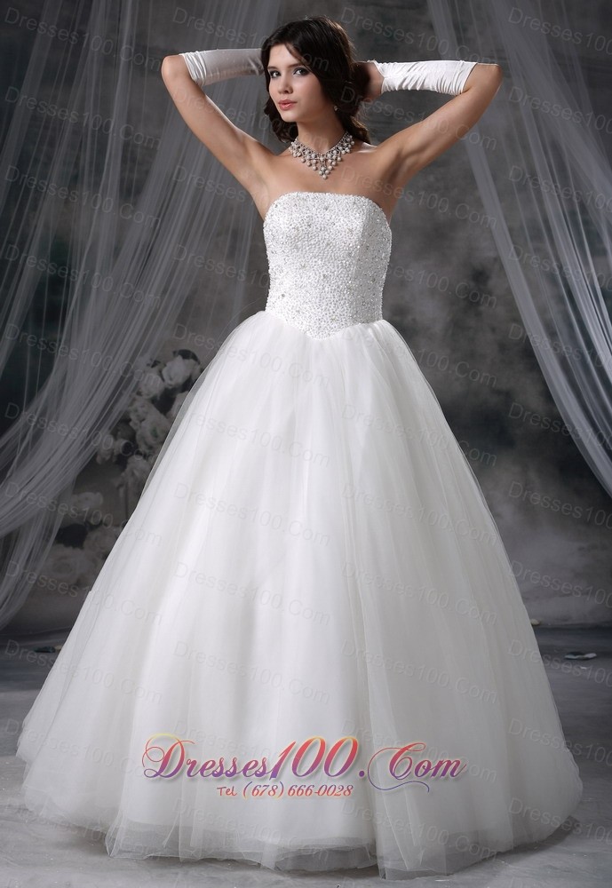 Beaded Tulle Ball Gown Strapless Wedding Gowns
